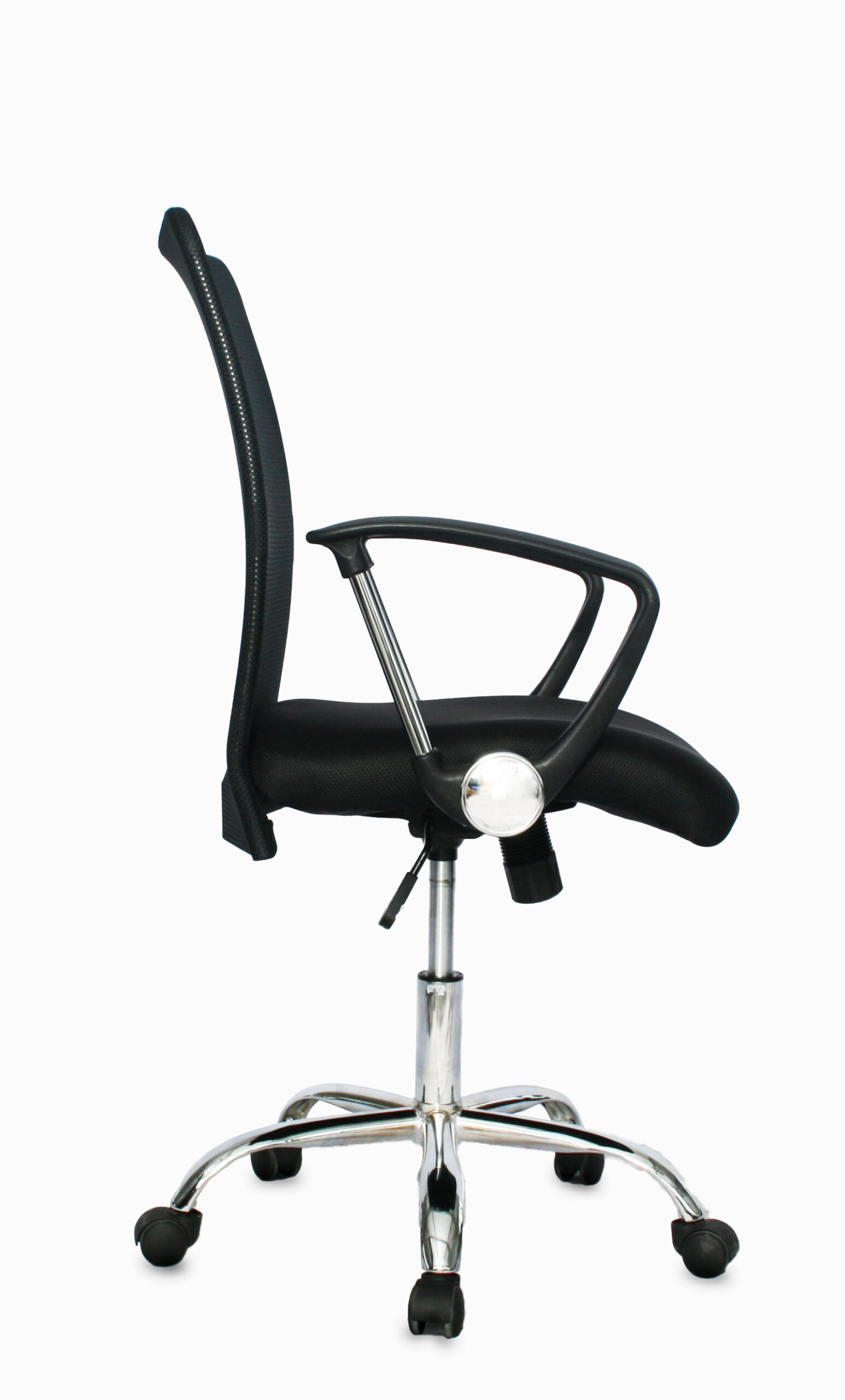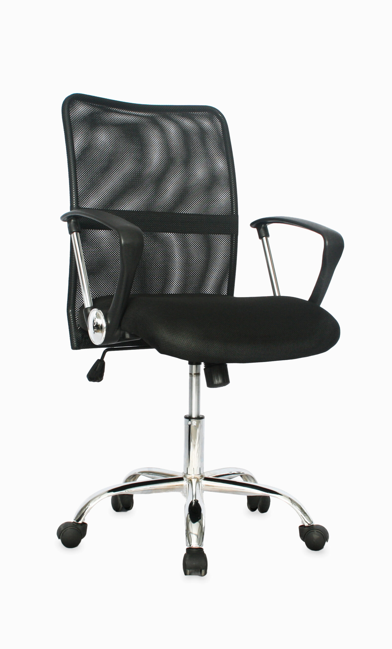 Brazo fijo / base cromo / espalda y asiento en doble malla doble. Mecanismo basculante y graduación de altura en asiento/ajuste en recueste de silla cuando no está en posición fija / Brazos fijos